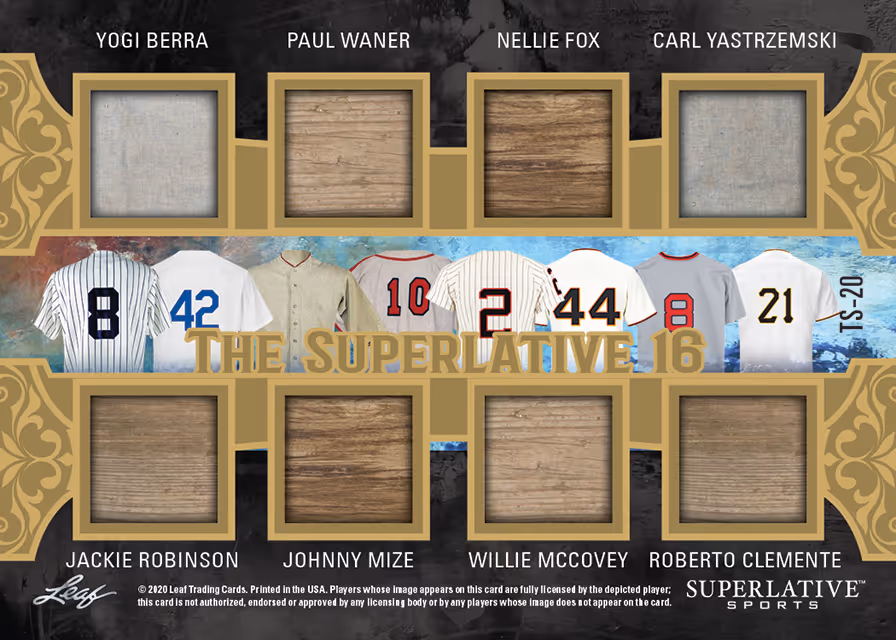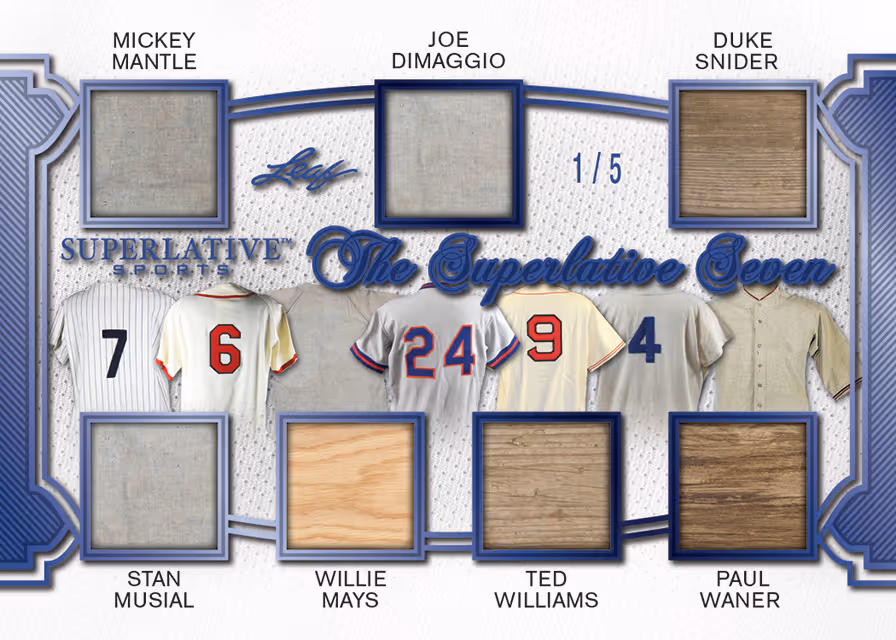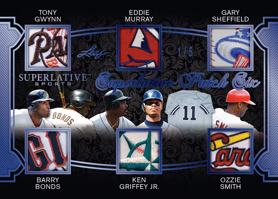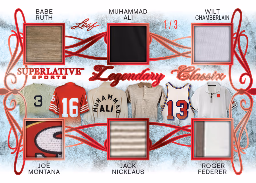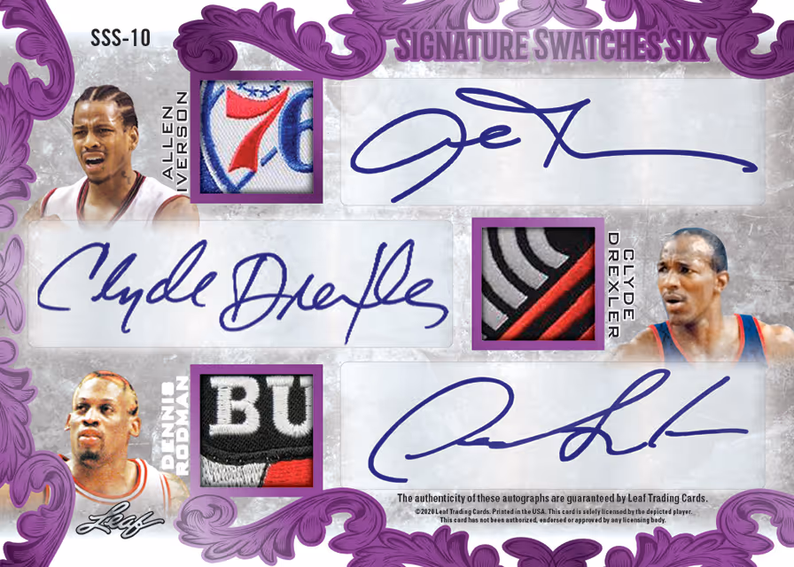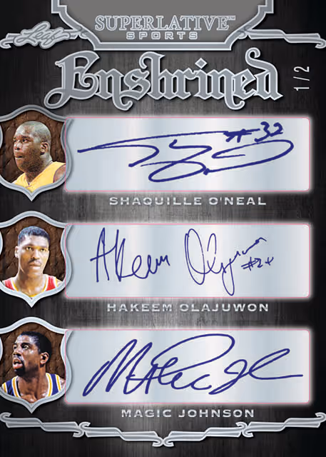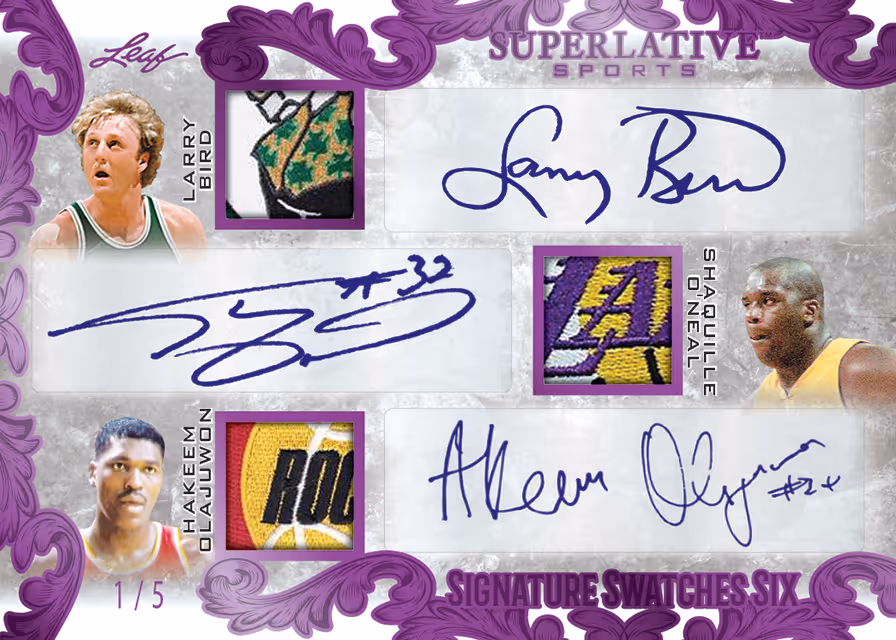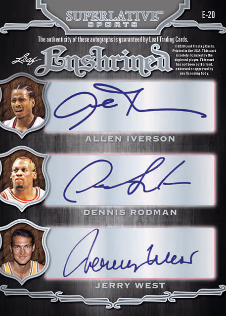 Leaf Trading Cards is proud to announce another amazing addition to our industry leading Mult-Sport Product Portfolio with 2020 Leaf Superlative Collection Sports! Enshrined, Front and back signed 6 player card featuring only those Enshrined in their respective sports HOF! Featuring Sports Icons such as: Ozzie Smith/Andre Dawson/Cal Ripken/Alan Trammel/Barry Larkin/Orlando Cepeda and Shaquille O'Neal/Hakeem Olajuwon/Magic Johnson/Allen Iverson/Dennis Rodman/Jerry West Greatness, A single player dual patch card featuring amazing patches or tags! Such as: Kobe Bryant, Muhammad Ali and Kevin Garnett
