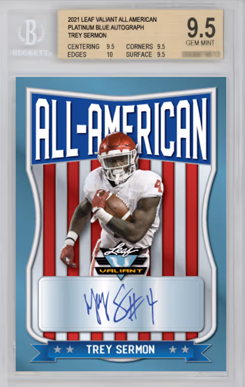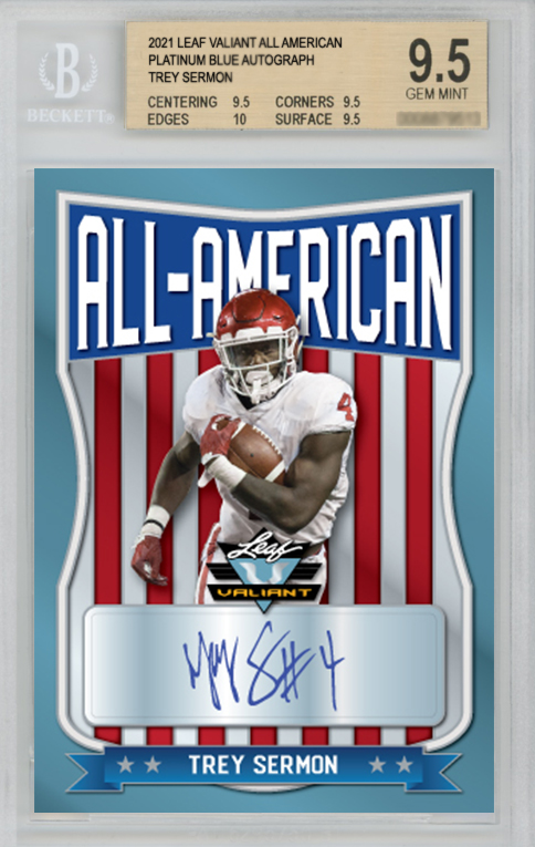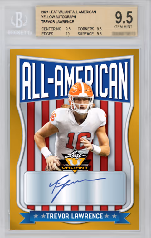 Leaf is pleased to announce the return of its ever-popular 2021 Leaf Valiant Football release. Once again, this release features an incredible selection of 2021’s hottest draft picks! Each box will contain 3 autographed cards and 1 BGS graded Autographed Card (BGS 9.5 or better)