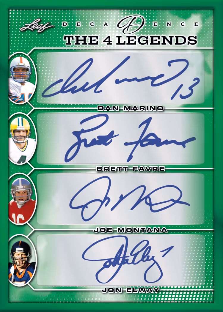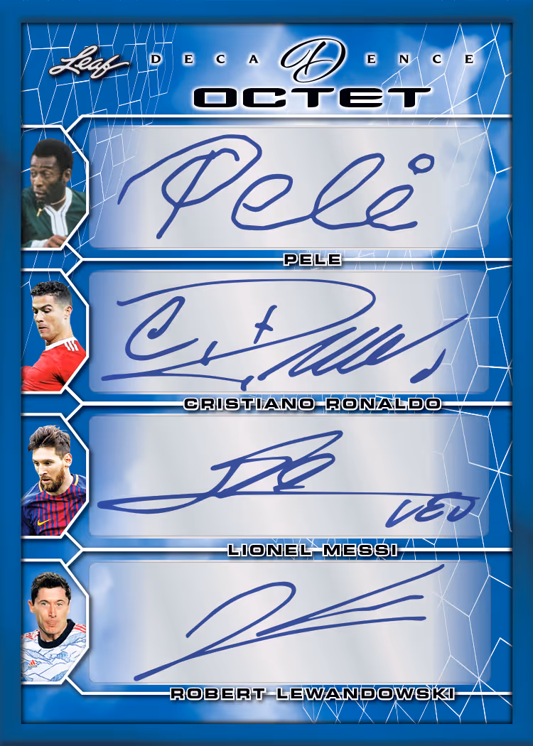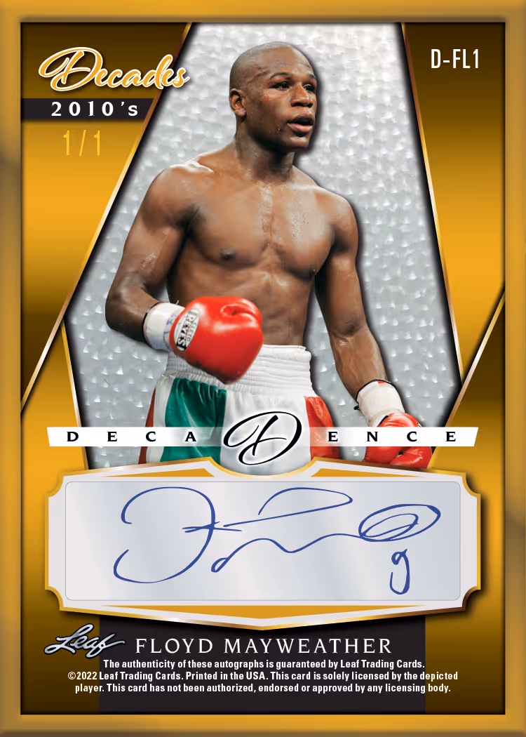 Leaf Trading Cards is excited to announce a new brand product to the Leaf Trading Cards Multi-Sport Product Portfolio with 2022 Leaf Decadence! Each card will be featured on Metal Framed Holo-Dimensional technology! Every card is numbered to 10 or less and every box gets at least one multi-signed card!!
