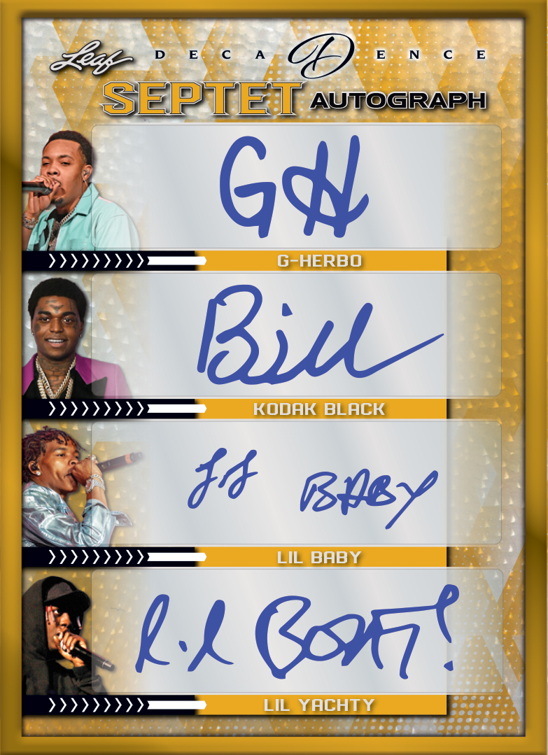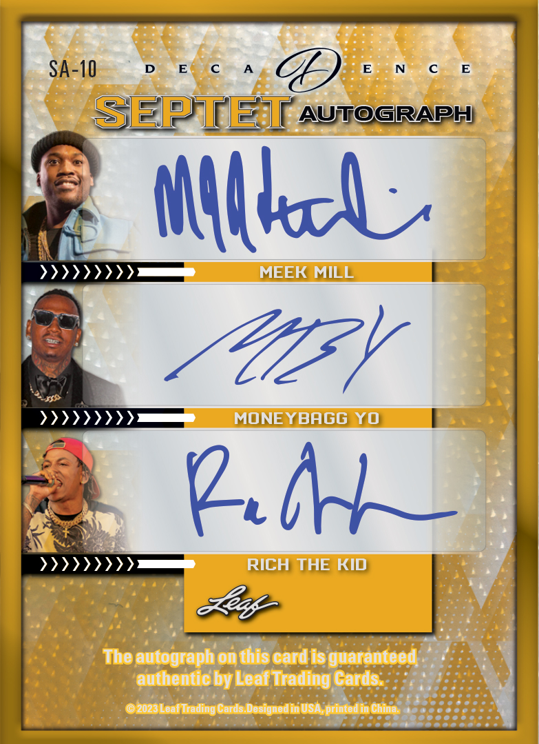 Leaf Is excited to announce that the extremely popular Decadence brand has come to Pop Century! Each card will be featured with a matching Metal Frame and on Holo-Dimensional Technology. Every card will be numbered to 10 or less! Every box will also contain at least one multi-signed card!