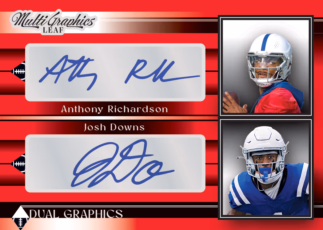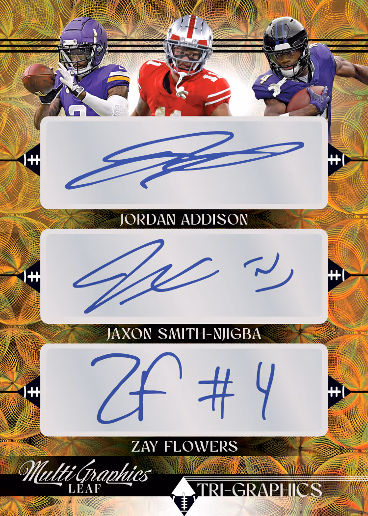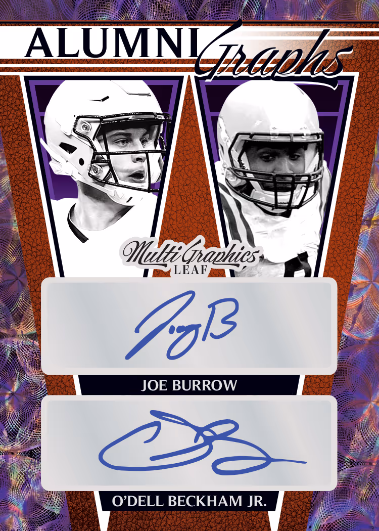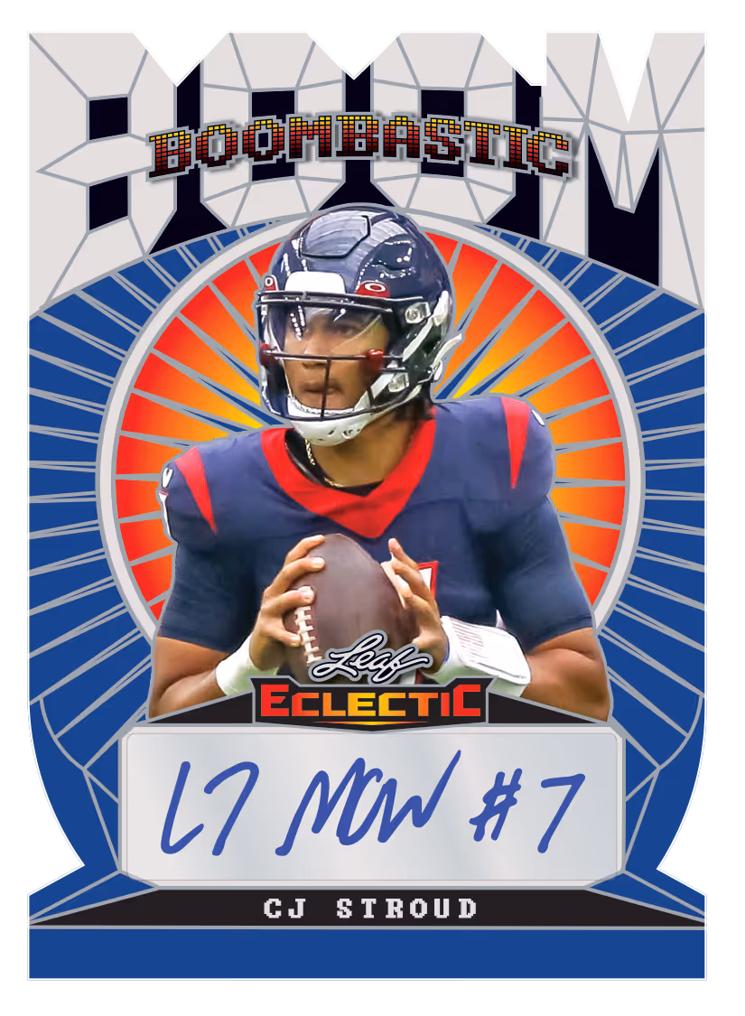 Leaf is bringing back some of your favorite football brands in a whole new way! 2023 Leaf Eclectic Football brings back fan-favorite brands including Valiant and Flash along with the debut of Optichrome and MultiGraphics Football! Every box will contain one autograph from a variety of brands! Each brand in Eclectic brings its own unique designs with a huge array of inserts including limited die-cut cards and super rare inserts. Eclectic will provide collectors a chance to chase down the top up-and-coming NIL players, pro players and past football greats. Every box will also include one MultiGraphics Dual, Triple or Quad signature card. Collectors can also chase more cards from the late great Jim Brown in the Legacy Collection set. To make things even better, every card in Eclectic will be numbered to 10 or less (excluding Jim Brown Legacy autographs).