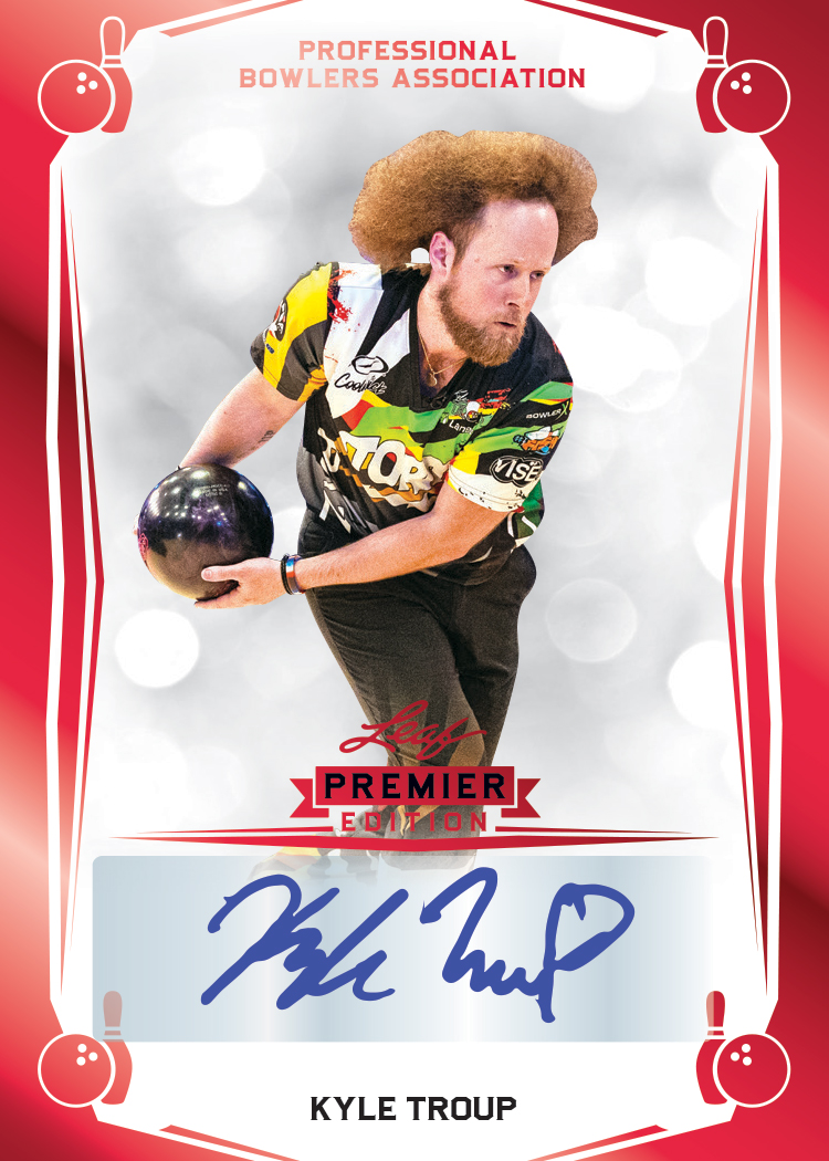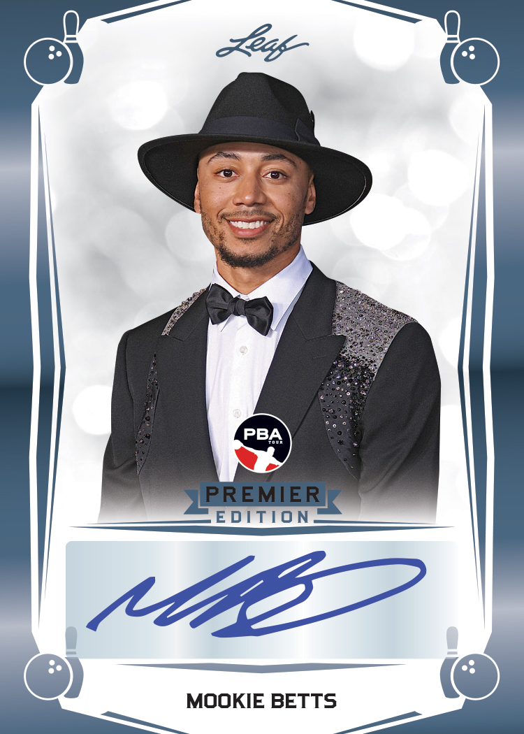 Leaf is proud to present their first ever Officially Licensed Professional Bowler Association (PBA) trading card set! 2023 Leaf PBA Premier Edition brings you the top bowlers and some of the biggest names to ever play the sport. Leaf PBA Premier Edition will showcase some of the first ever trading cards of today's top bowlers along with their first ever autographed cards. Be on the lookout for the extremely rare PBA Kings and PBA All-Time Kings Autograph cards featuring current greats such as Jason Belmonte and past legends such as Pete Weber and Walter Ray Williams Jr. Collectors will also be able to find autographs featuring superstar athletes from other sports including Mookie Betts, Jerome Bettis and more! Collectors will find a variety of Rookie Cards, Numbered Foil Parallels and Autograph Cards in 2023 Leaf PBA Premier Edition. Each Box will include 3 Base Cards, 1 Base Parallel Card #'d to 25 or less, and 3 Autograph Cards including at least 1 Autograph Foil Color Parallel limited to 49 or less!