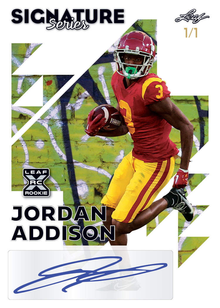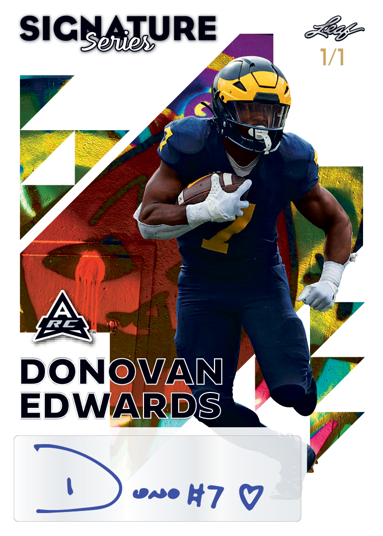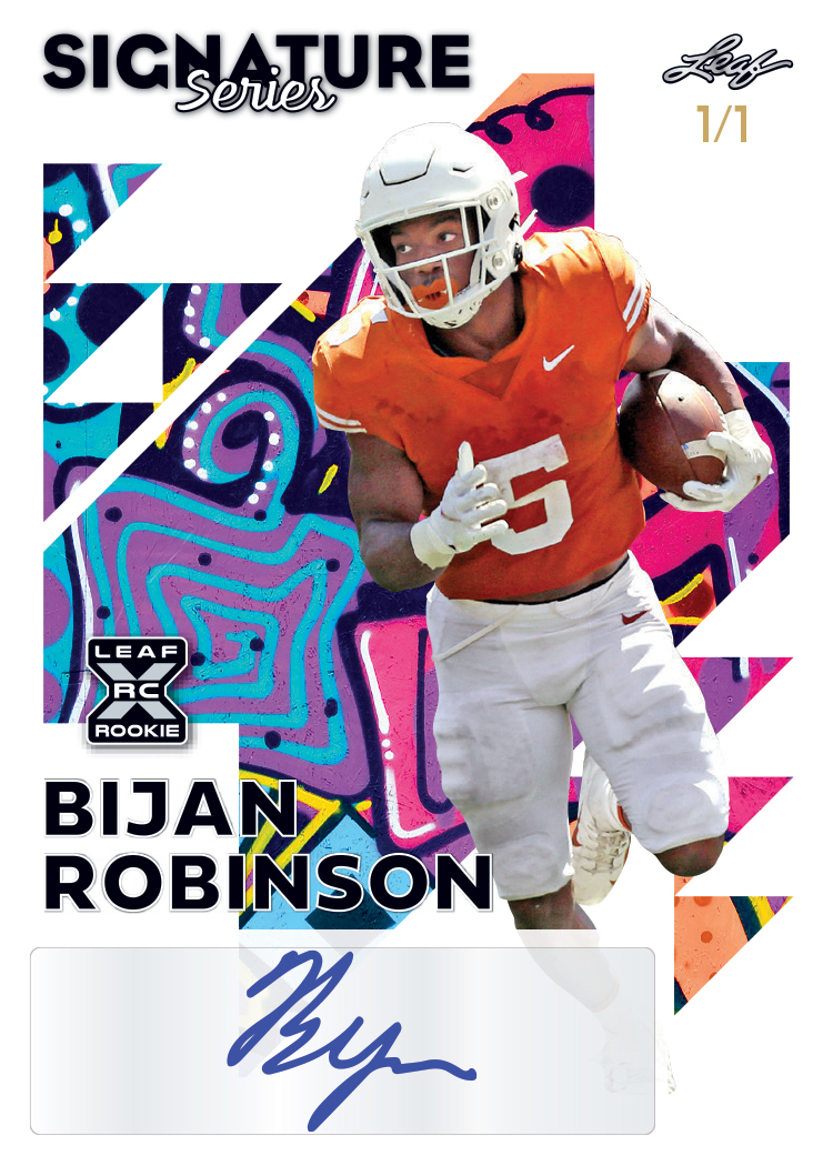 LEAF IS PLEASED TO ANNOUNCE THE RETURN OF SIGNATURE SERIES FOR THE 2023 LEAF FOOTBALL LINEUP. EVERY 2023 LEAF SIGNATURE SERIES FOOTBALL BOX INCLUDES A 1-OF-1 SIGNED CARD! THIS SET NOT ONLY INCLUDES THE FIRST EVER XRC OR ARC ROOKIE CARDS FOR PLAYERS, BUT ALSO CONTAINS SOME OF THE MOST POPULAR VETERAN PLAYERS PLAYING TODAY AS WELL AS LEGENDS OF THE PAST.