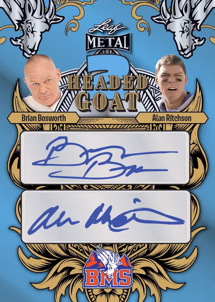 Introducing the 2024 Leaf Blue Mountain State—the first-ever officially licensed trading card set from the cult classic show! This collection features incredible inscriptions and die-cuts highlighting iconic moments from the series. Each card is numbered to /50 or less, with most cards being numbered to /10 or less, making this product extremely rare and highly coveted. Look out for stunning multi-signed cards, including autographs from Hall of Famers who made memorable appearances on the show. This collection brings your dream cards to life!