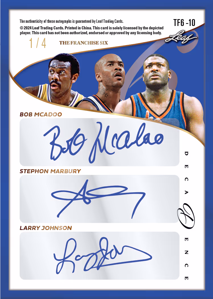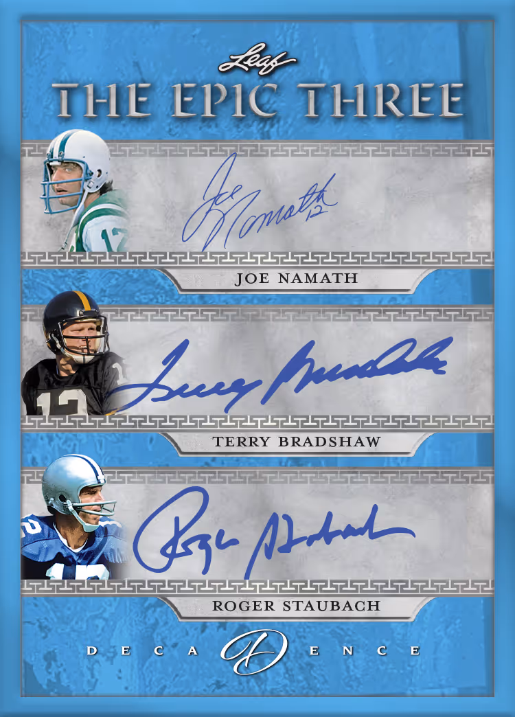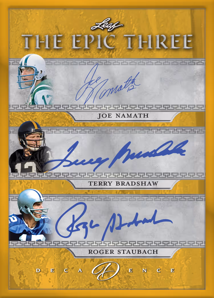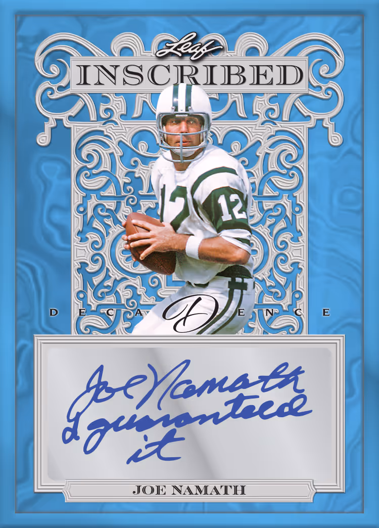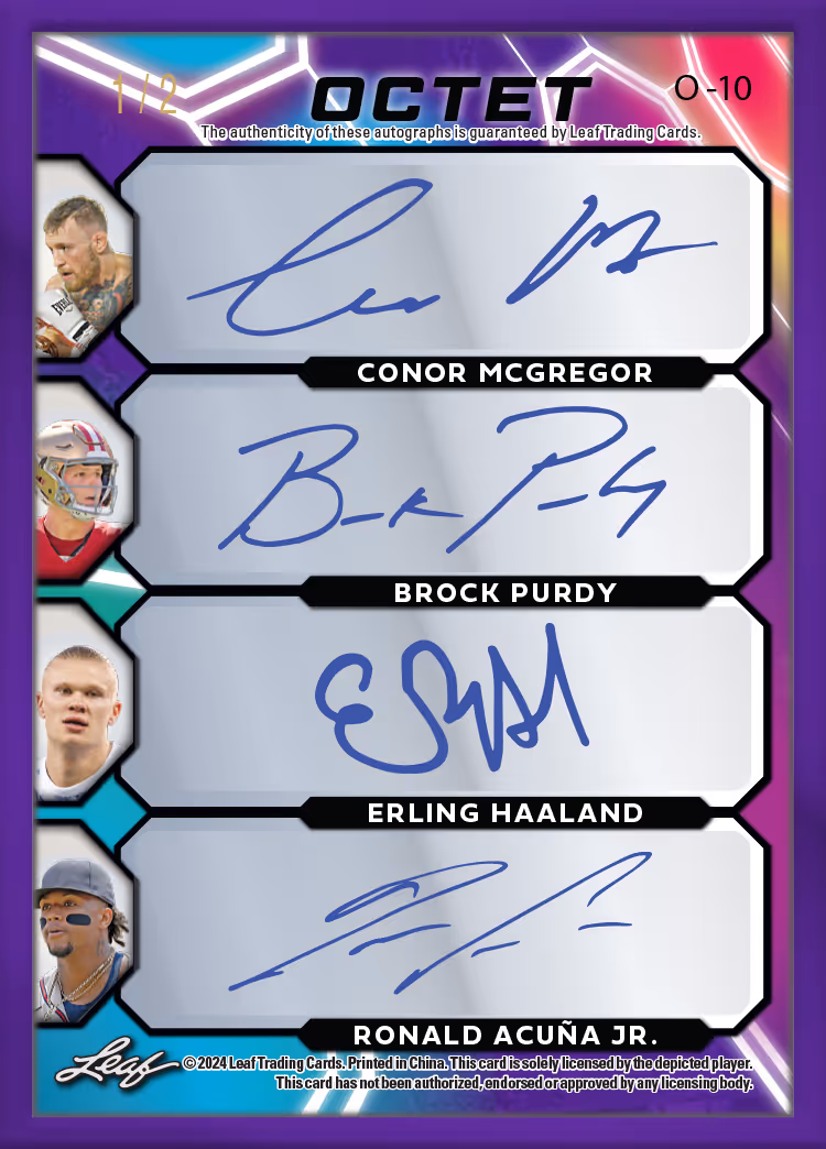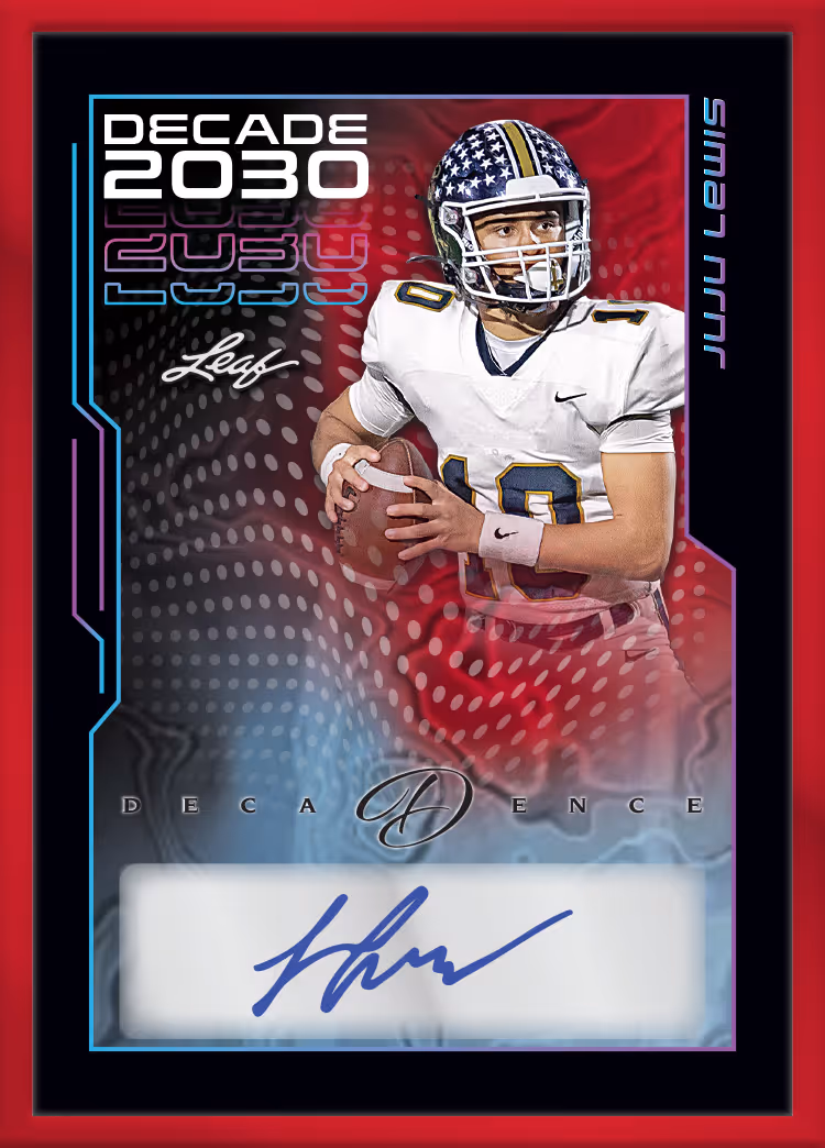 LAST YEAR LEAF INTRODUCED A NEW HIGH-END BRAND TO OUR INDUSTRY-LEADING MULTI-SPORT PRODUCT PORTFOLIO CALLED LEAF DECADENCE. THE PRODUCT TOOK THE INDUSTRY BY STORM SO WE HAD TO BRING IT BACK FOR 2024! EACH CARD IS METAL FRAMED AND FEATURED ON HOLO-DIMENSIONAL TECHNOLOGY!