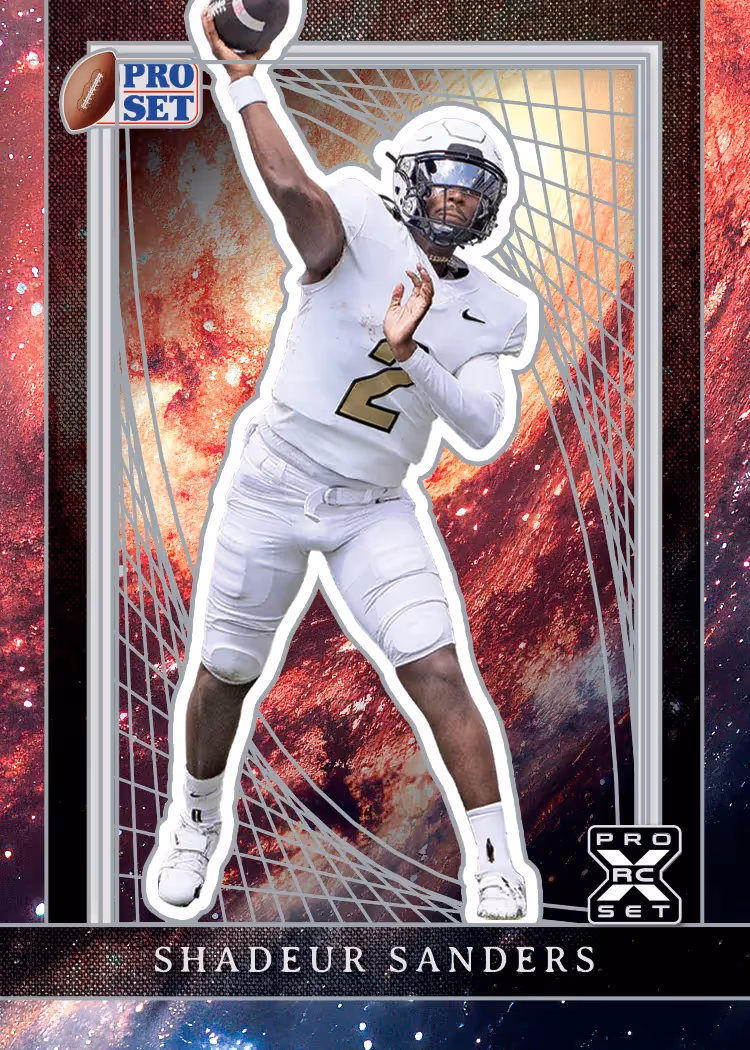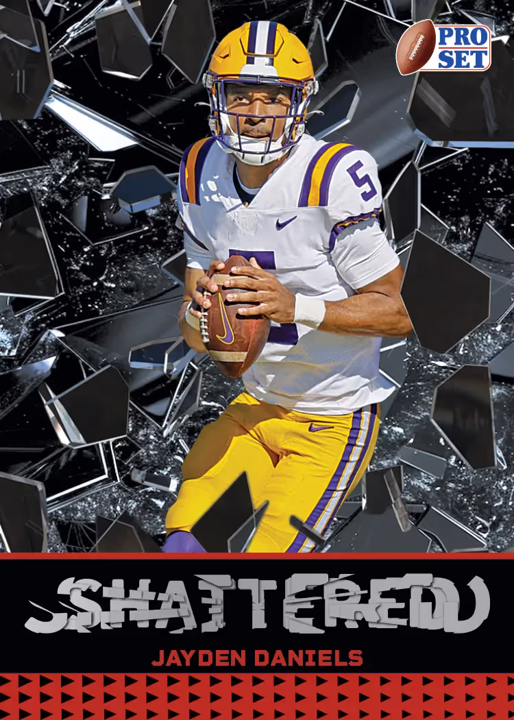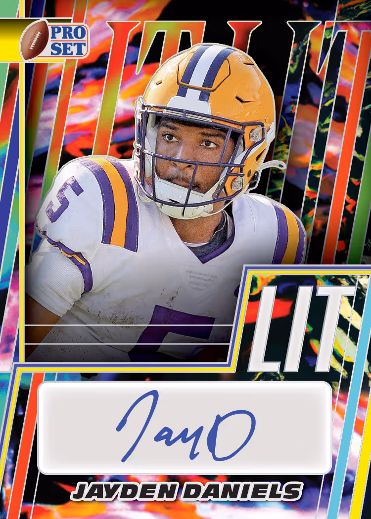 Pro Set Metal Football makes its triumphant return for 2024! Along with a checklist that includes the top young college and pro talent on the gridiron, 2024 Pro Set Metal Football will also feature some of the greatest legends and superstars in the game including Joe Namath, Josh Allen, Barry Sanders and more! In addition to a stellar autograph insert set that includes the return of LIT and Pro Set Portraits, you can find the all-new die-cut Penned Pylons, Dynamic Du-Pros dual autographs and a one-per box box topper Lenticular Autograph card, Pro Set PROSpEcTs!