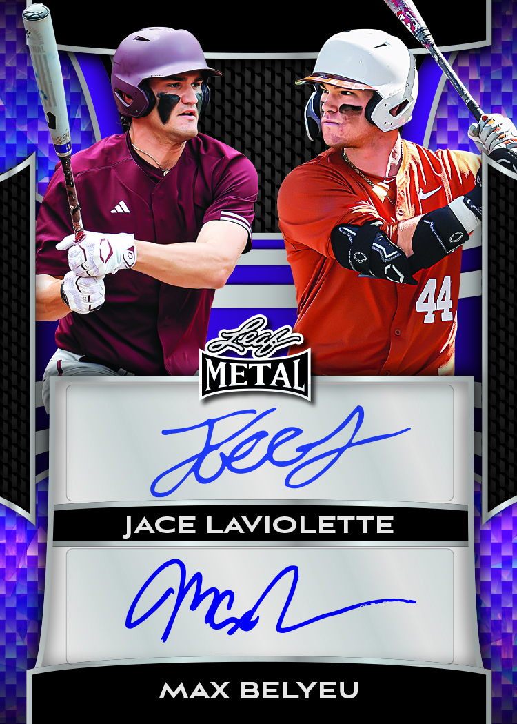 2025 Leaf Metal Baseball continues to offer you the biggest names from the past, present and future! Collectors will find an amazing autograph checklist of former baseball legends, current superstars, and the top prospects from college and the minors. Every autograph in Metal Baseball will be limited to 49 copies or less! Find autographs of baseball’s biggest legends, superstars and prospects including: Frank Thomas, Bo Jackson, Nolan Ryan, Travis Bazzana, Jace LaViolette, and many more!