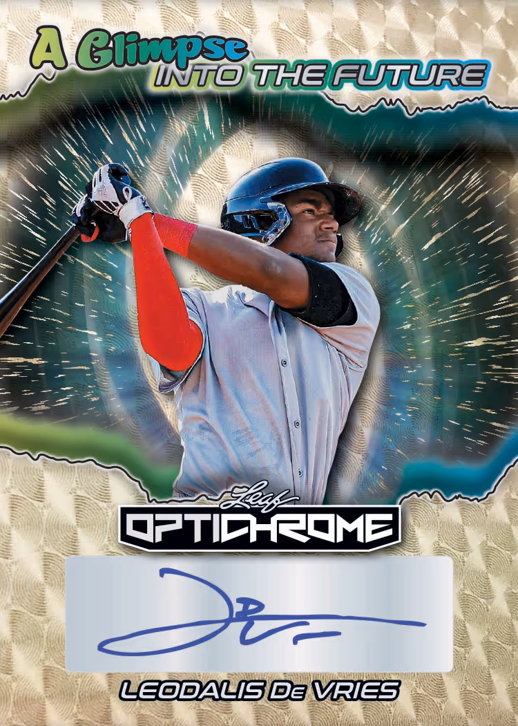 Leaf Trading Cards is proud to introduce 2025 Leaf Optichrome Baseball, a brand new addition to the Leaf Baseball product portfolio! Showcasing Leaf’s patented metal technology, this release features a full spectrum of baseball talent from the past, present, and future. Collectors can expect stunning designs, low-numbered inserts, parallels, and high-end chase throughout the product. Look for the extremely rare Glow Base and Glow Autograph versions. New to Optichrome Baseball: memorabilia cards! This release includes an incredible lineup of signed legends, top prospects, and game-used memorabilia cards featuring some of baseball’s greatest icons, including Lou Gehrig, Babe Ruth, Mickey Mantle, Ted Williams, Willie Mays, and more.