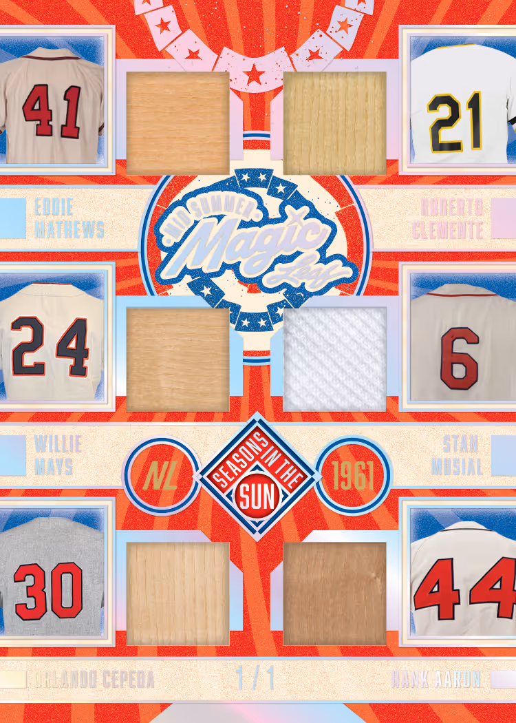 9 Player signature booklet cards 9 Player memorabilia booklet cards Cut signatures from legends such as Jackie Robinson, Babe Ruth, and Ted Williams 12 Player game-used memorabilia cards Memorabilia cards featuring Ty Cobb, Babe Ruth, Mickey Mantle, Roberto Clemente, “Shoeless” Joe Jackson, Sadaharu Oh, and many more. Look for 3 multi-signed cards per case. Also in this amazing release will be a very rare 1 of 1 insert called Name Tag which features the stitched name plate taken right off legendary superstars game-used pants, featuring legends and stars such as Roger Maris, Joe McCarthy, Juan Soto and many more!