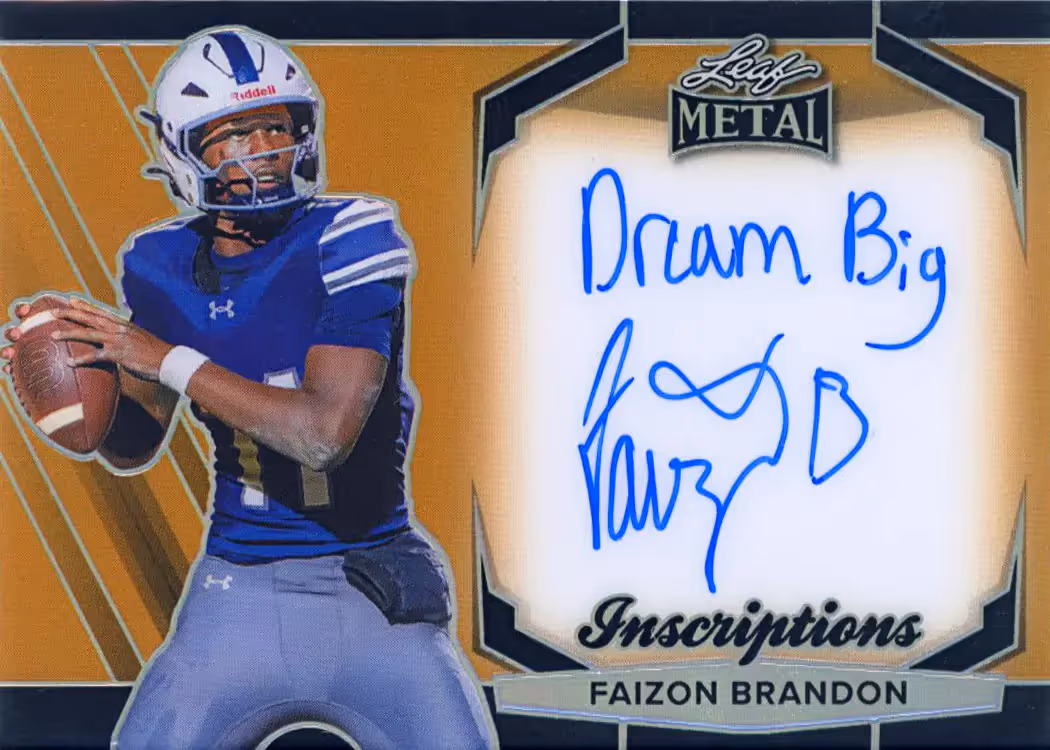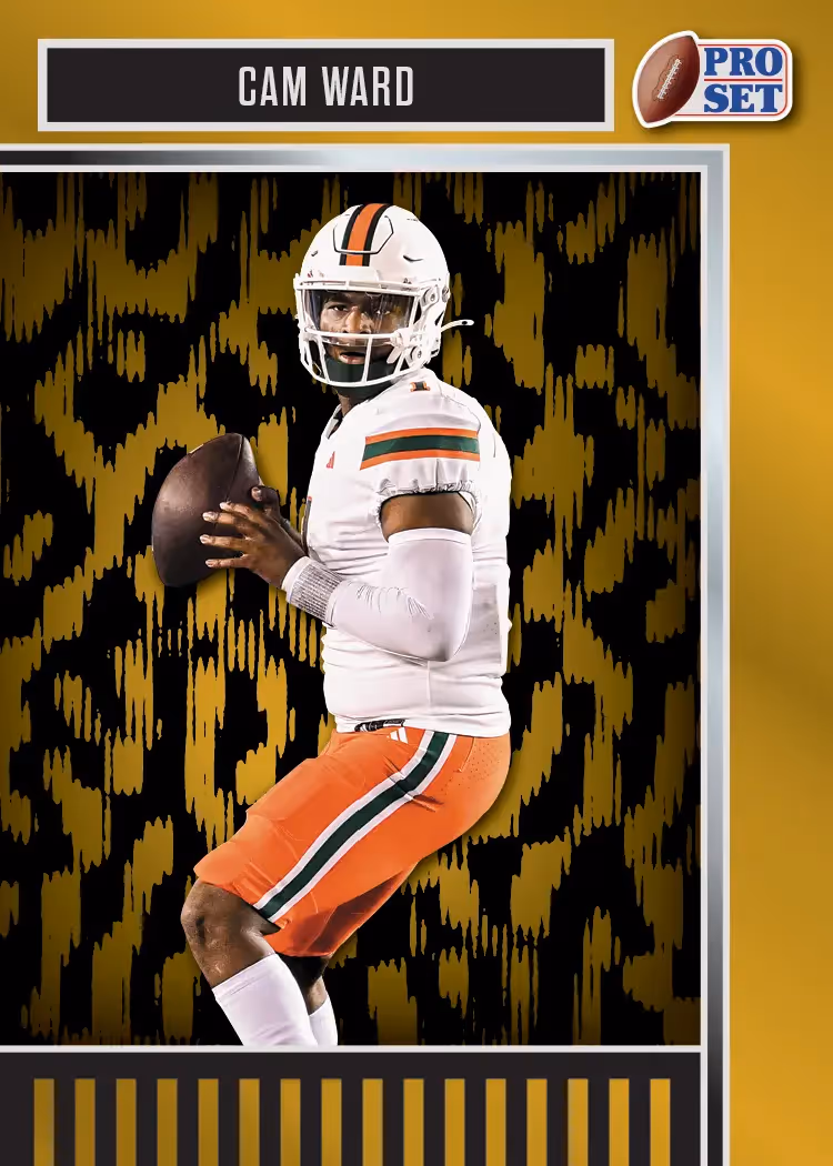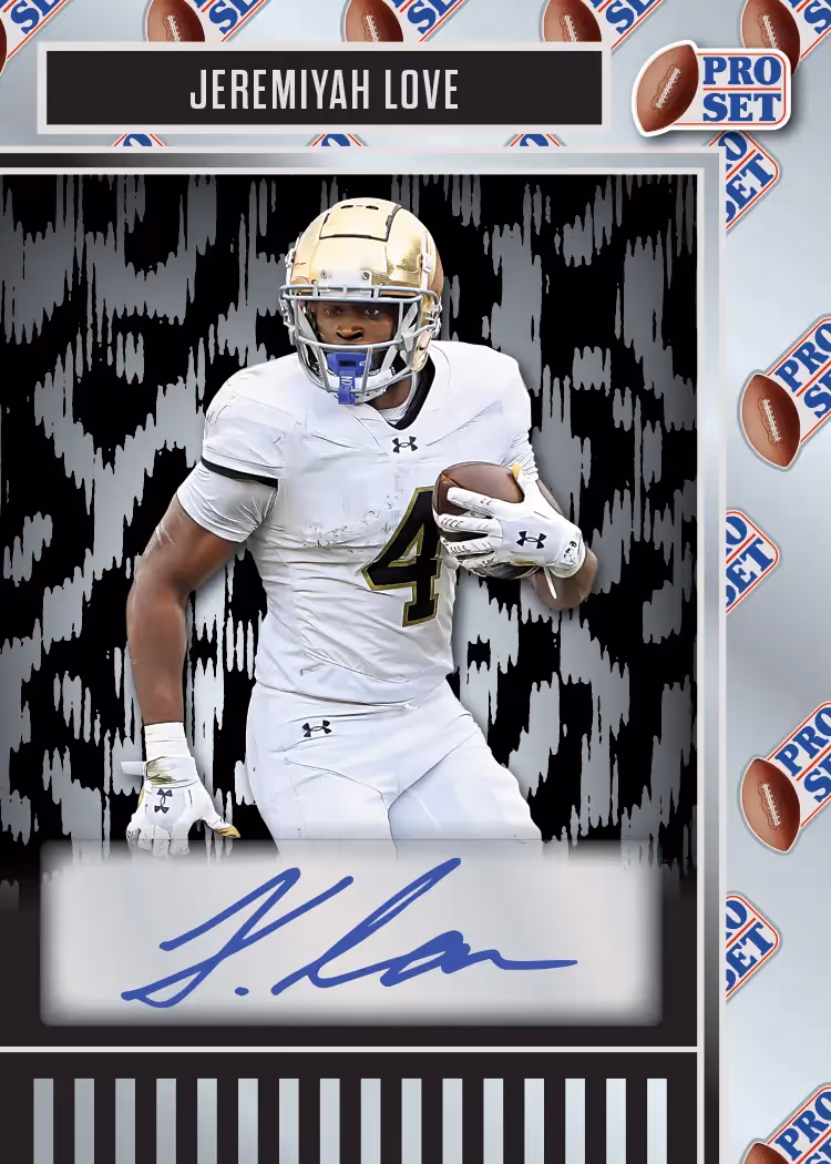 2025 Pro Set Metal Football brings you an amazing mix of new and retro Pro Set designs. Every autograph card is limited to 25 or less and the checklist includes the biggest names in football! Find autographs of football’s biggest legends, superstars and NIL stars including Peyton Manning, Patrick Mahomes, Dillon Gabriel, Ju Ju Lewis, Bryce Underwood and many more! Each Hobby box includes a Surname Signature encased autograph insert! Complete the player set to spell their name! Look for 1-of-1 Super Prismatic Gold versions! Each Super Box includes 8 autograph cards PLUS 1 Exclusive Pro Set Border 1-of-1 Autograph AND 1 On-Card Inscription Autograph!