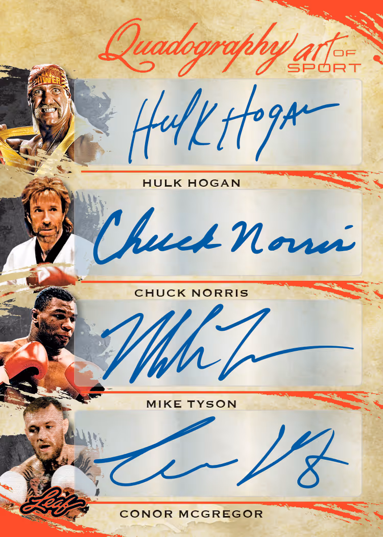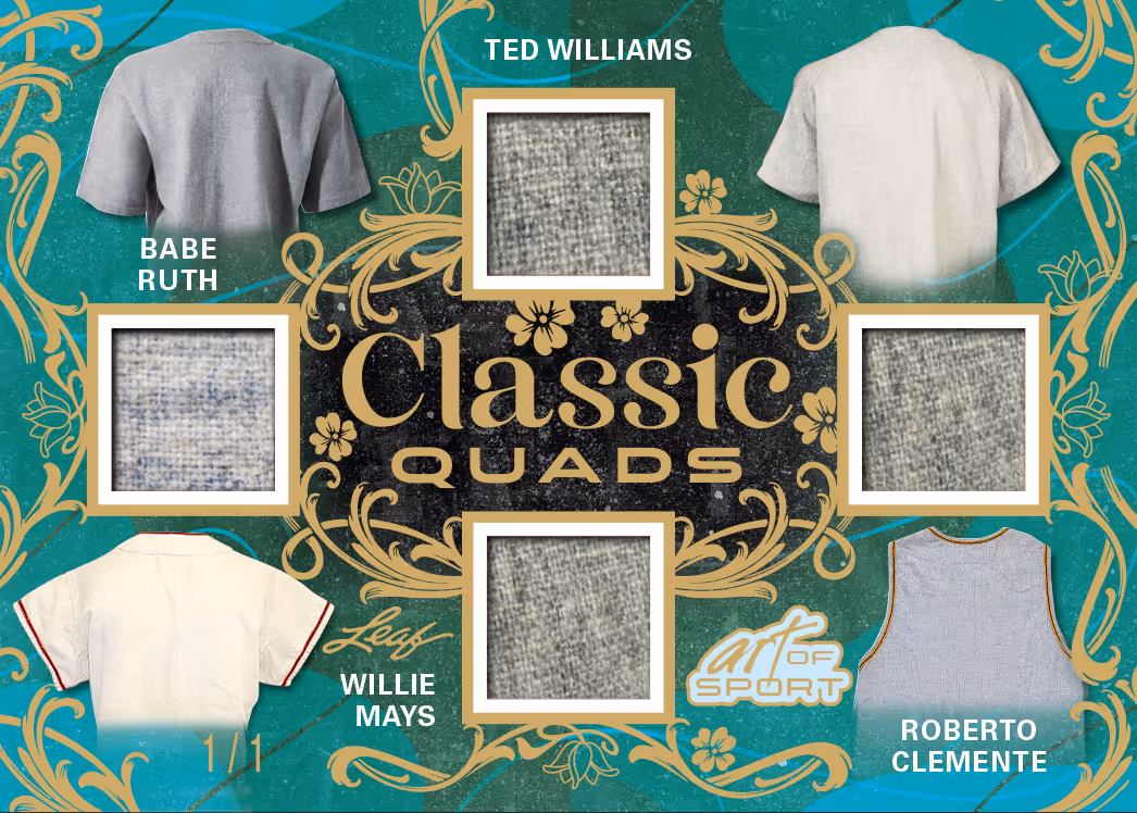 Look for multi-signed cards with meaningful combinations featured on glorious canvas designs. No other company can provide the depth and value that Leaf Trading Cards can in their multi-sport products. Art of Sport has a beautiful presentation throughout the product that features rare game-used memorabilia pieces that only Leaf Trading Cards can offer. Look for beautifully designed and aesthetically pleasing booklet cards that are sure to become the center piece in anyone’s collection. One of the most unique and eye-catching products the market can offer from any company. Leaf Art of Sport combines art and the world of sport that is sure to please a collector of any level.