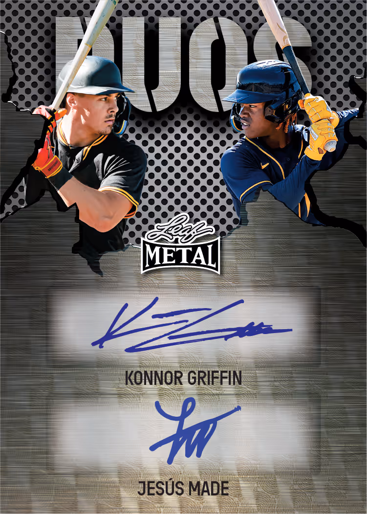 Leaf Trading Cards is proud to announce its first 2026 baseball release with 2026 Leaf Metal Baseball. This exciting product features an amazing assortment of top young future stars alongside legendary names from the past, delivering a dynamic checklist for collectors. Look for updated Armed and Dangerous inserts in 2026 Leaf Metal Baseball, showcasing the top young arms in the game alongside some of the greatest legendary pitchers of all time. Collectors can find these dynamic cards across three different stunning background variations. New themes for 2026 Leaf Metal Baseball include Draft Dreams, highlighting last year’s top drafted players, and Explode Onto The Scene, showcasing an exciting wave of emerging young talent. These additions bring fresh energy and depth to this year’s release. Look for three to four signatures per case from the following young stars: Eli Willits, Jacob Lombard, Jesús Made, Justin Lebron, Kevin McGonigle, Konnor Griffin, Nick Kurtz, Roch Cholowsky, and Trey Yesavage. These rising talents add strong depth and excitement to the 2026 Leaf Metal Baseball autograph checklist.