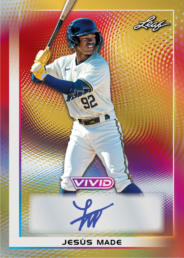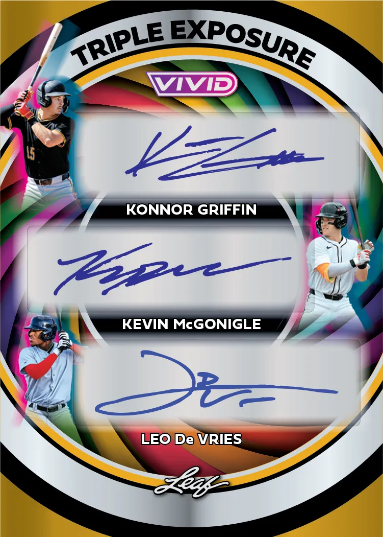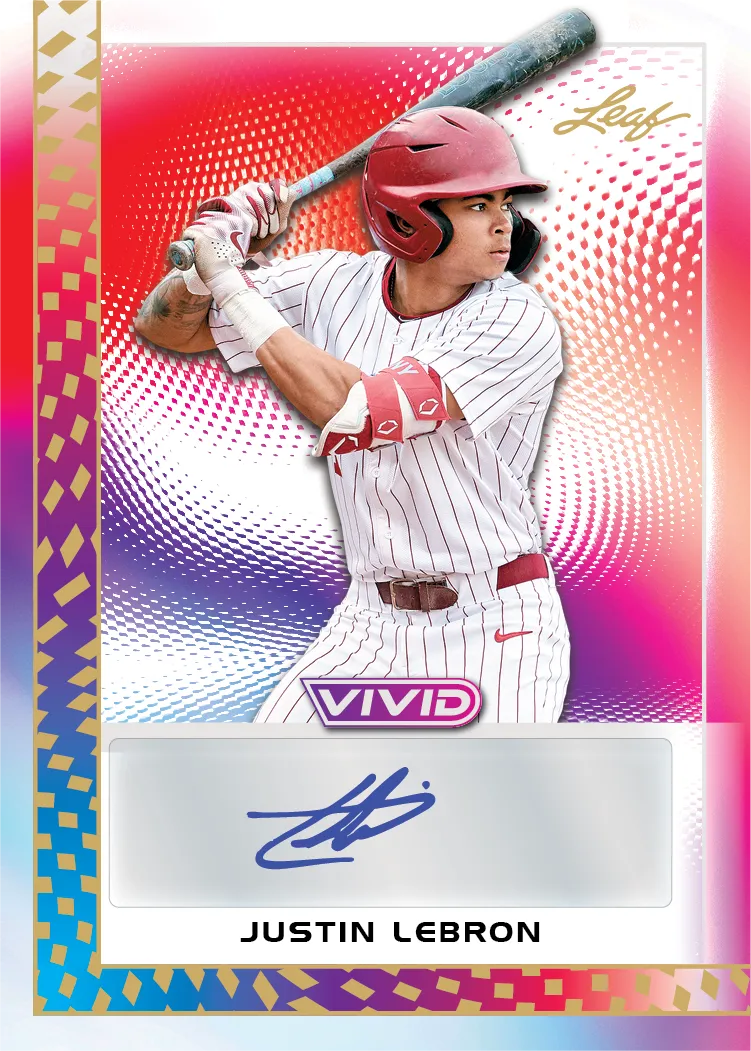 Leaf Trading Cards is excited to announce the return of 2026 Leaf Vivid Baseball. This vibrant release continues the tradition of bold, colorful, and eye-appealing designs showcased on beautiful metal technology, delivering a striking visual presentation that stands out in any collection. Look for 6 autographs per case in 2026 Leaf Vivid Baseball from an exciting lineup of top prospects and rising stars. Featured names include Eli Willits, Jackson Flora, Jesús Made, Justin Lebron, Kevin McGonigle, Konnor Griffin, Leo De Vries, Nick Kurtz, Roch Cholowsky, and Trey Yesavage.