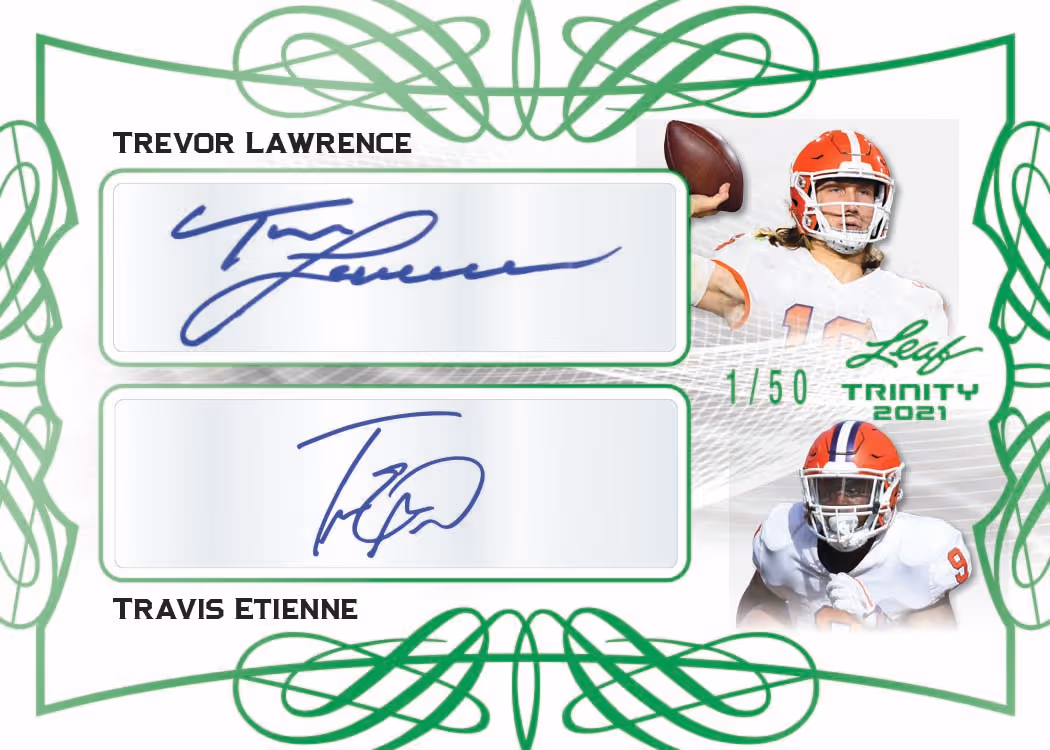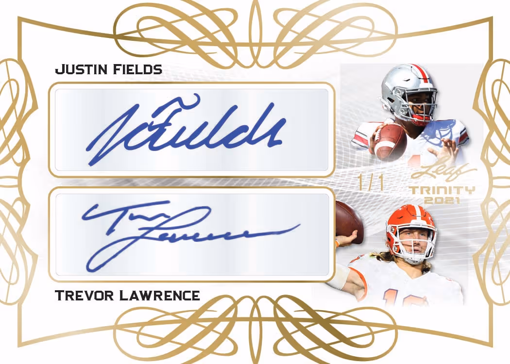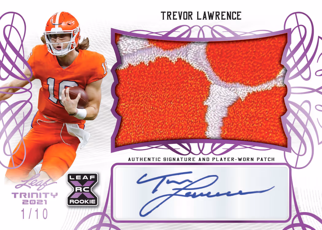 Leaf is pleased to announce the return of its popular football release, 2021 Leaf Trinity Football! Once again, this popular set features the most exciting young prospects in football including the top picks in the 2021 Draft! Look for: Trinity Patch Autographs: The hobby's most desirable rookie patches among Draft products. Trinity Signatures: Autographs of the Top Draft picks and prospects of 2021.