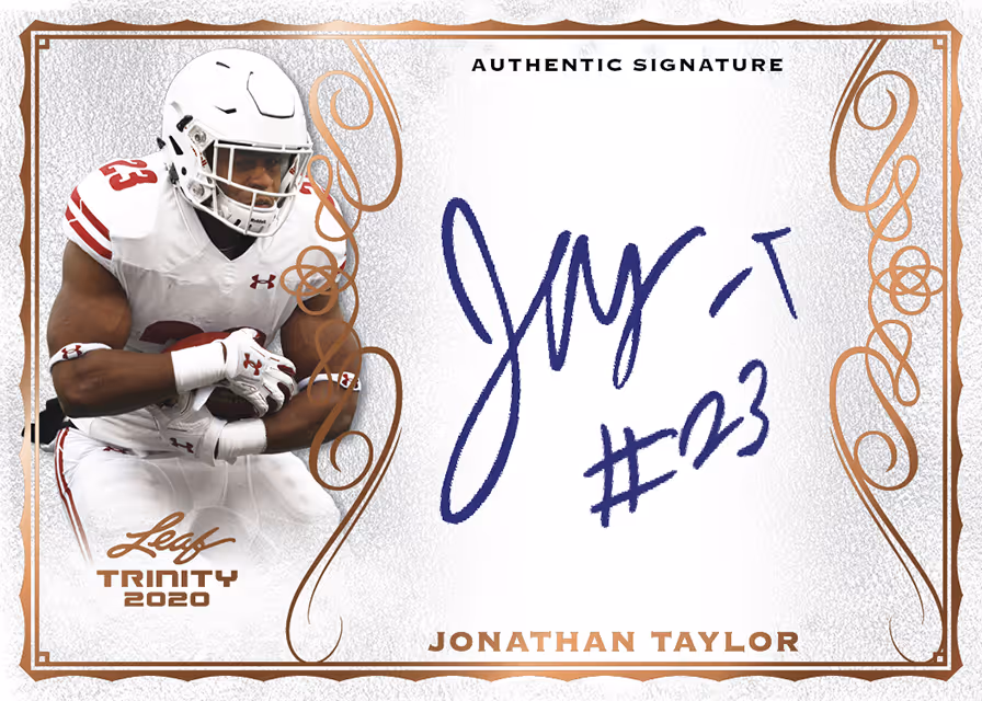 Leaf is pleased to announce the return of its immensely popular, 2020 Leaf Trinity Football! Once again, this release returns with the popular jumbo patch autographs, clear autographs, and trinity signatures (many of which feature inscriptions).